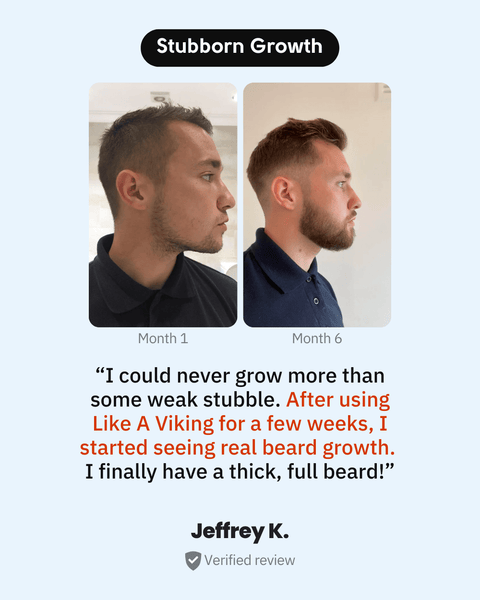 Using both together helps you maximise your beard growth potential — so you can go from “can’t grow” to “full Viking mode.”